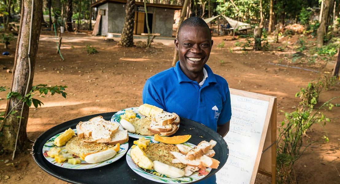 Stay, eat, and play. On Sierra Leone’s picturesque Banana Island, Bafa Resort offers natural luxury. We provide a glamping experience with a variety of lodging options, and our fresh daily dining menu features some of Sierra Leone’s best marine food. Our luxurious tents have one or two queen-size beds and quality memory foam mattresses. All of the tents feature ocean views and are on private platforms. For those on a tighter budget, we also provide conventional tents with air mattresses. Relax in a hammock beneath our palm tree jungle while sipping a chilled beverage on a beach bed, snorkeling in the bay, kayaking among the islands, or taking a free diving tour.