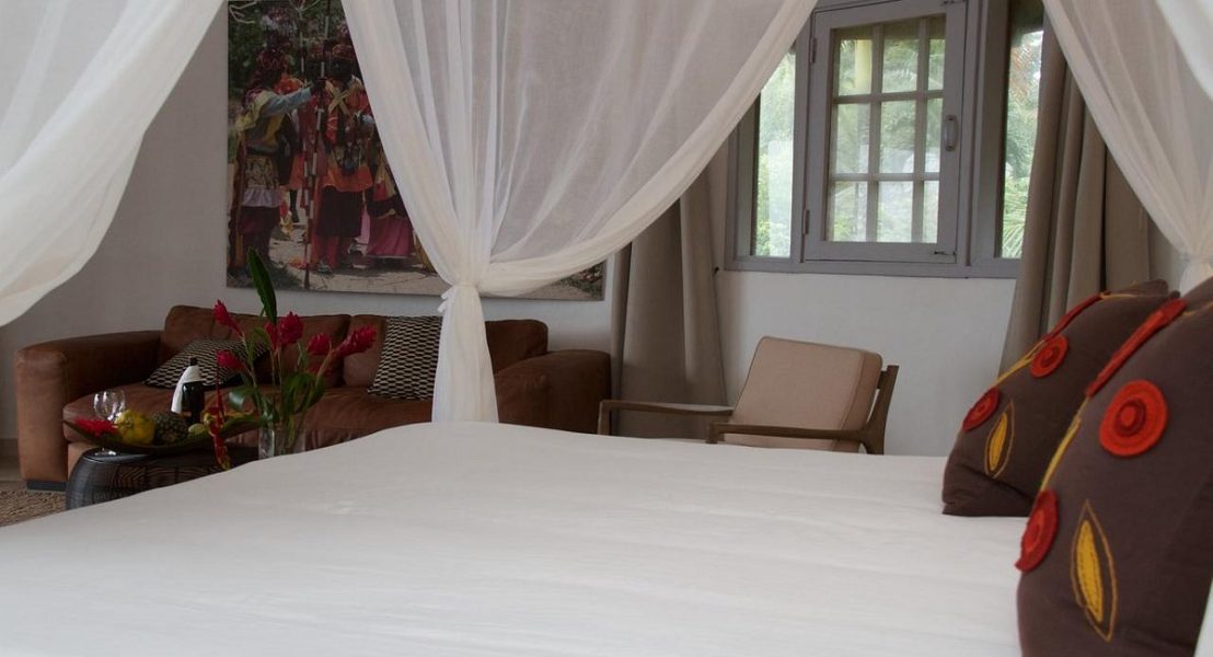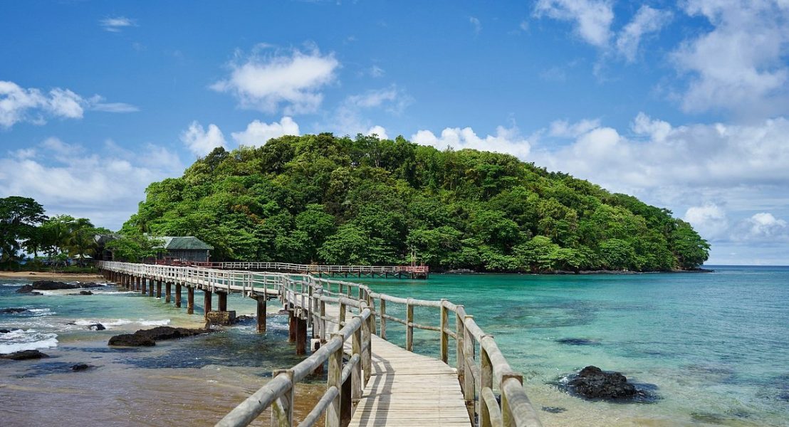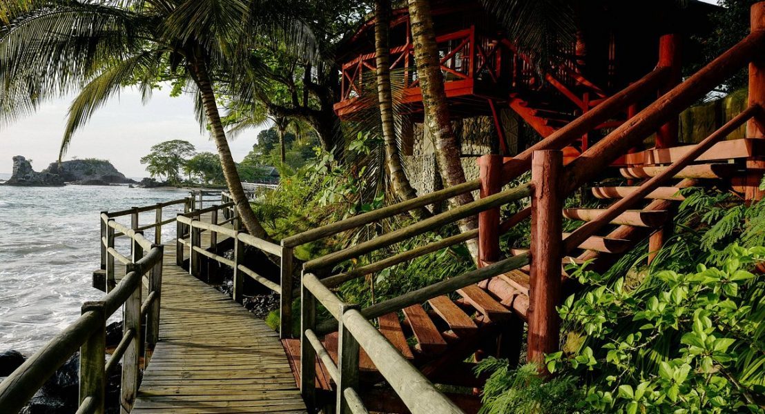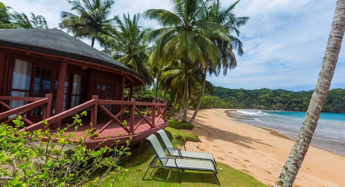 The Bom Bom resort is still a well-kept secret in the tropical forest of the Island of Principe, set between two beaches of emerald green water, sand toasted golden by the sun, and small flawless shells. The genuine warmth of people who greet you, the dazzling simplicity of its rooms, the exotic scents of its flowers, and the morning symphony provided by nature to wake you up are all examples of true luxury. Each step across the 242-meter wooden bridge that leads to the little islet that gives the hotel its name evokes a rising sense of awe and a desire to return.