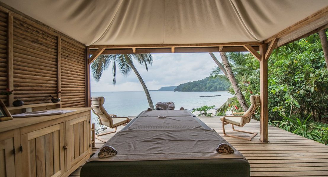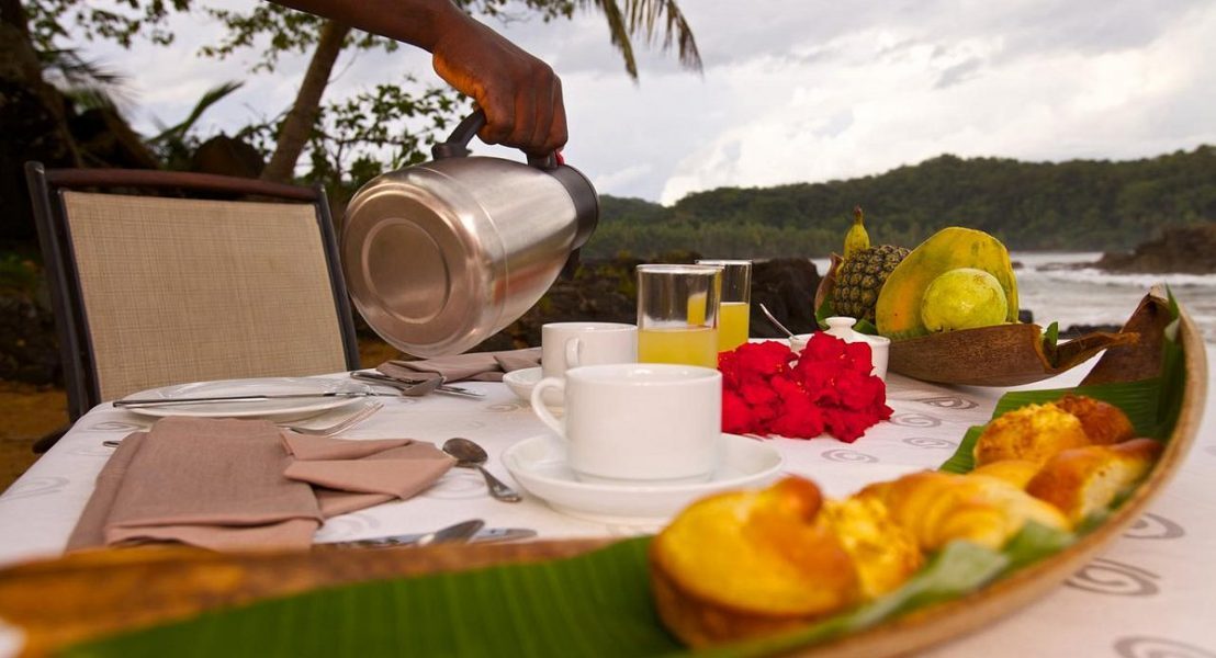 At Bom Bom Principe, everything is cool, relaxed, and pleasant, and that is exactly how you will feel if you choose this hotel for your visit to Principe Island. You’ll be overcome with awe when you cross the 242-meter-long wooden bridge that connects the mainland to the little islet that gives the resort its name and is the only way to get to the restaurant.