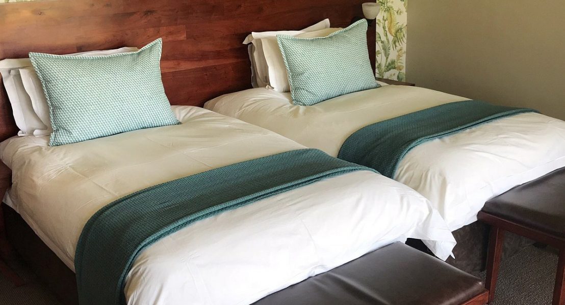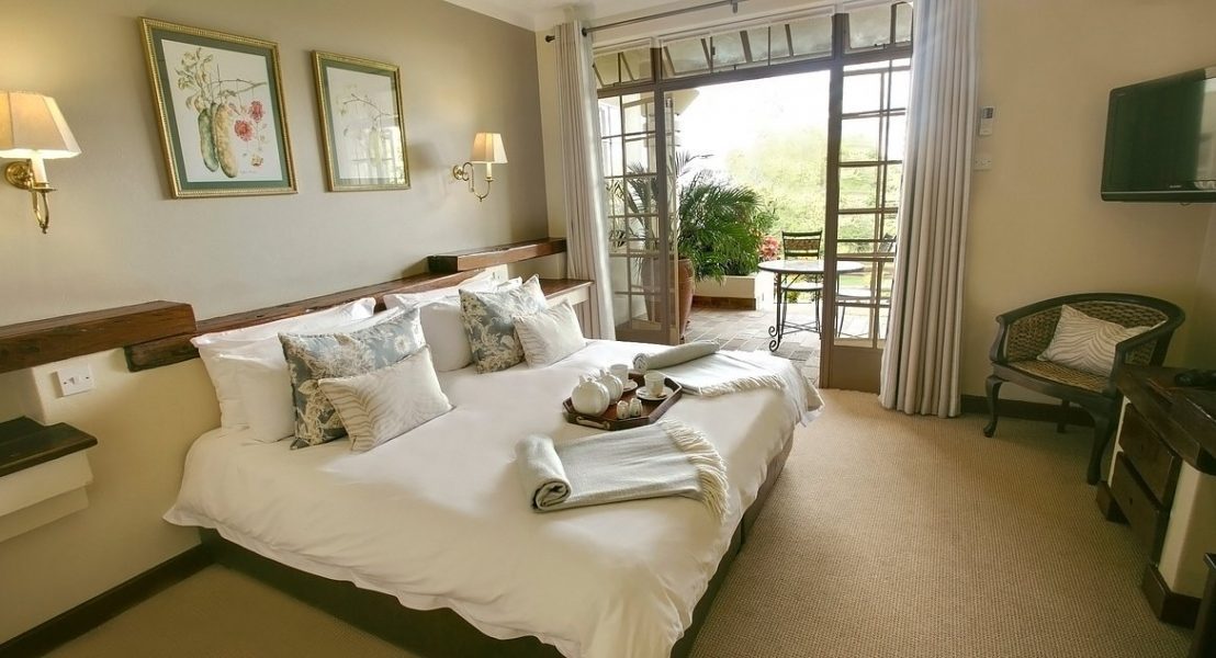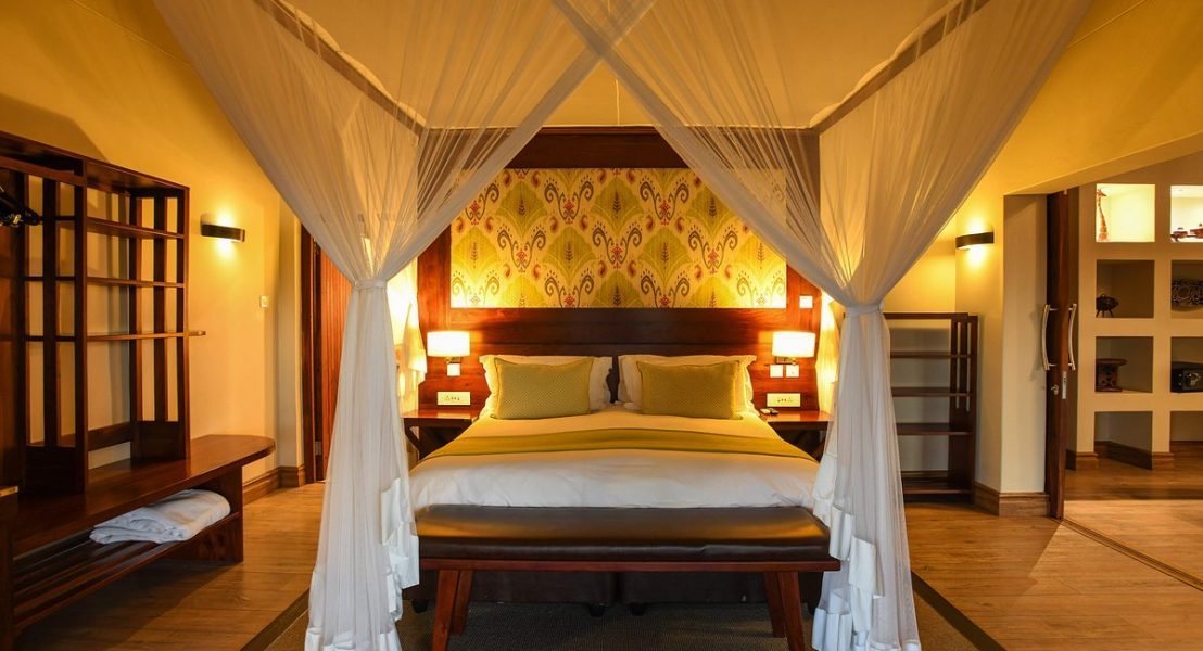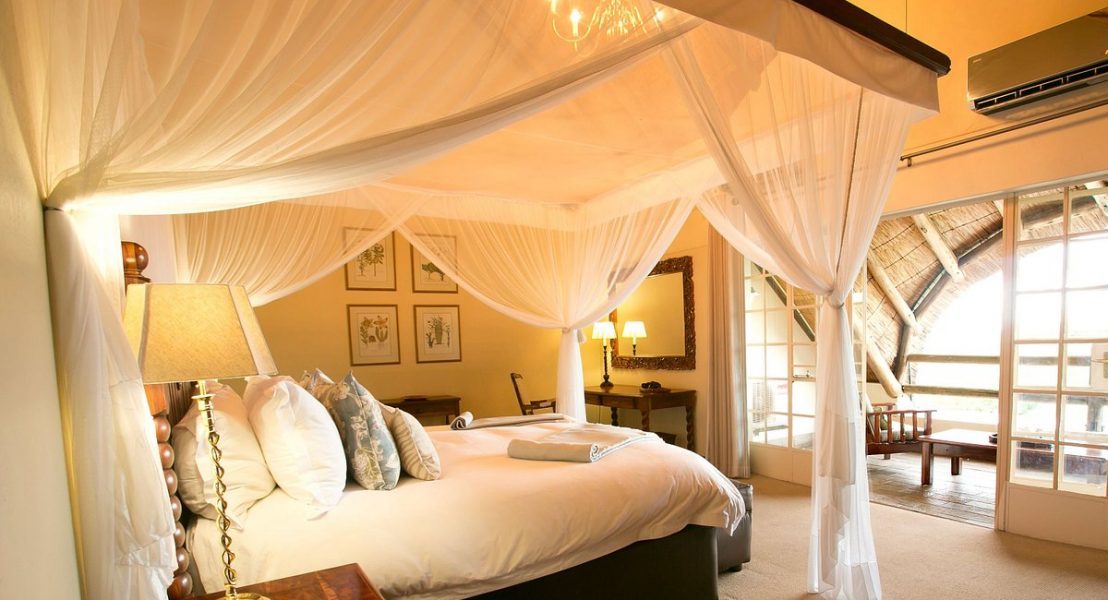 Ilala Lodge has 32 rooms, including 24 twins, eight doubles, and two suites. All rooms feature an en suite bathroom with a separate shower, air conditioning, an overhead fan, and satellite TV, as well as complimentary tea/coffee and a fruit basket in the morning. The rooms are large, with teak railway sleeper furnishings and patio doors leading to either an open lawn or a balcony with a view of the falls spray from the top-level suites.